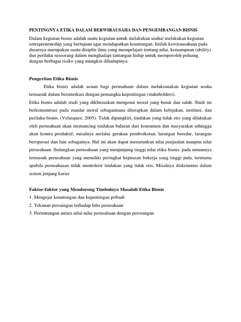 Pentingnya Etika Dalam Berwirausaha Dan Pengembangan Bisnis